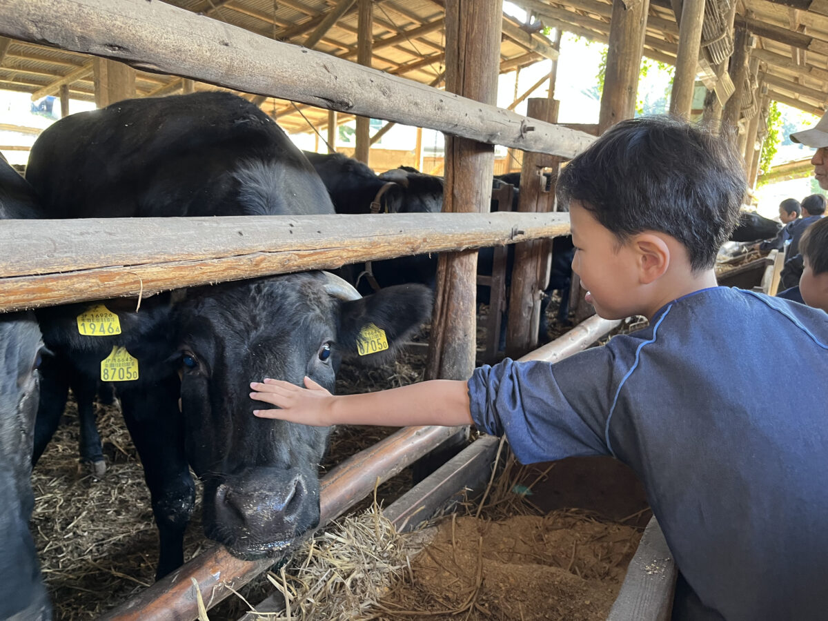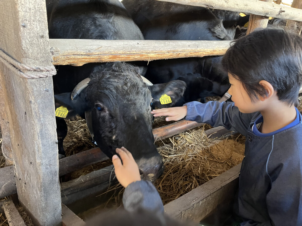 竹内さんたちの愛情いっぱいに育てられた牛さんたちは人懐っこくて、子どもたちの手をぺろぺろと舐めていました。
